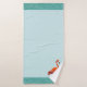 Flamingo rosado en la playa sobre un juego de toallas verde azuladas. Ideal para los amantes de la naturaleza.