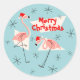 Un diseño Navidad animado y original con un toque retro con flamencos rosas con sombreros Santa, formas geométricas crema y estrellas de fondo azul (cambio de color). Un diseño de personalizable para que puedas personalizar con tu propio texto, imágenes e ideas. Imagen original de arte digital creada por QuirkyChic.