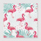 Flamingo y hojas tropicales, patrón de verano.