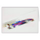 Esta emocionante tarjeta incluye un coche de carreras de ruedas abierto difuminado por la velocidad.