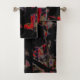 Dibujo muy abstracto de las manchas rojas llamativas sobre la base rocosa oscura, textura digital con manchas grises gradientes que pueden causar alguna percepción satinada que contrastan con las manchas rojas que recuerdan a los golpes de pincel.