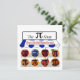 Apple, blueberry, cherry, peach, pecan, pumpkin, strawberry, and sweet potato "pi"s in a bakery window.