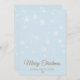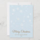 Simple Blue Snowflakes Merry Christmas Holiday Card. La tarjeta con un texto de Feliz Navidad, tu nota personal y un número de año en el guión de moda. Los hermosos copos de nieve blancos se encuentran en la parte delantera de la tarjeta, el fondo es azul.