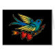 Arte de tatuajes vintage con el tema clásico de un pájaro que lleva una flecha con corazones.