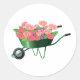 Una hermosa exhibición de flores en una carretilla. Esta es una pieza maravillosa que es tan colorida y brillante. Las flores están en una carretilla verde. Esta carretilla llena de diseño de flores se ve genial en estos pegatinas. Perfecto para usted o como regalo