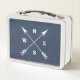Ilustracion de brújula con flechas y decoración norte, este, sur y oeste sobre fondo de grano azul