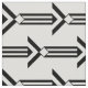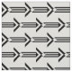 La tela geométrica elegante ofrece un modelo negro intrépido en blanco. Tres rayas negras son capsuladas por un triángulo negro, un galón blanco, y entonces un galón negro más grande que le da la mirada de una flecha. El galón más grande entrecruza un esquema del diamante negro que resuelva con las tres rayas siguientes como las repeticiones del modelo. El blanco separa las secuencias de flechas de la compensación.