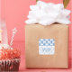 Pegatinas de bodas de flores tribales de diseño con fondo de flecha azul y blanca. Fácil de personalizar con los detalles de su boda. Para obtener más opciones de personalización, haga clic en el botón Personalizar.