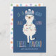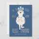 La graciosa tarjeta de Navidades de animales de granja incluye una llama linda cubierta en un gorra de invierno y luces de Navidad en un fondo azul marino con saludo de Navidad "Fleece Navidad" (en lugar de Feliz Navidad). Arte por KL Stock