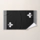 Elegante juego de toallas de baño con Fleur-de-Lis blanco sobre fondo negro y blanco. Fleur-de-Lis simboliza realeza, virtud y armonía. La imagen se puede personalizar.