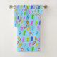 El conjunto de toallas de baño está decorado con un bonito y moderno estilo de chanclas coloridas sobre un fondo azul claro. ¡Listo para tu casa de playa o un gran regalo para los amantes de las chanclas!