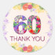 Flores cumpleaños número 60 gracias pegatinas 60 años. Estos encantadores pegatinas florales son perfectos para celebrar el cumpleaños número 60. Con un vibrante "60" lleno de flores coloridas y las palabras "Gracias" debajo, estos pegatinas le agregan un toque reflexivo a cualquier favor, sobre o tarjeta de agradecimiento de la fiesta. El delicado borde floral combina a la perfección con otras papelería de eventos, convirtiéndolas en una adición versátil a su celebración. Ya sea que se utilice como sello para sobres o como etiqueta favorita, estos pegatinas son una forma encantadora de mostrar su agradecimiento a sus huéspedes. ¡Disfrútalo!