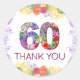 Flores cumpleaños número 60 gracias pegatinas 60 años. Estos encantadores pegatinas florales son perfectos para celebrar el cumpleaños número 60. Con un vibrante "60" lleno de flores coloridas y las palabras "Gracias" debajo, estos pegatinas le agregan un toque reflexivo a cualquier favor, sobre o tarjeta de agradecimiento de la fiesta. El delicado borde floral combina a la perfección con otras papelería de eventos, convirtiéndolas en una adición versátil a su celebración. Ya sea que se utilice como sello para sobres o como etiqueta favorita, estos pegatinas son una forma encantadora de mostrar su agradecimiento a sus huéspedes. ¡Disfrútalo!