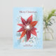 Esta tarjeta de vacaciones presenta una simple flor abstracta de pascua roja de invierno. Los colores suaves cálidos y frescos complementan cualquier mensaje de vacaciones. La parte trasera de la tarjeta tiene mucho espacio para agregar una foto o texto adicional.