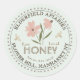 Flores de color rosa claro y delgadas con pequeñas abejas en una etiqueta de sabio pálido simple y elegante. Wt neto en oz y gramos. Borde con puntos.