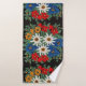 Una imagen de un estampado de flores con una mirada de la costura de las flores alpinas blancas de Edelweiss de Europa en su producto. Colores azules, rojos, amarillos, y blancos. Alpinum del Leontopodium de Suiza, de Alemania, y de Austria.