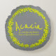 Gouache y acuarela amarillo wattle flor de acacia flor de flores de chica personalizada almohada. Personaliza con tu propio nombre y significado de nombre en la parte delantera de la almohada. Actualmente se lee Acacia Una flor intrigante. Lleno de alegría y belleza. © Pintura original y diseño de Sarah Trett para www.mylittleeden.com