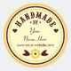 Pegatinas de estilo retro divertido "hecho a mano por..." con un diseño de flores en amarillo y marrón. Personaliza con tu propio nombre/negocio y dirección de sitio web/blog.