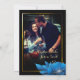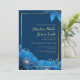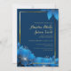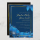 Elegante flor azul con marco dorado, esta moderna y elegante invitación a la boda es una excelente manera de invitar a sus invitados. Los elementos dorados no son más que un efecto de color creado por el artista en la obra, no son un verdadero Relieve metalizado de oro. Simplemente personaliza la información de eventos y la foto en esta plantilla para crear una invitación única.