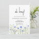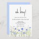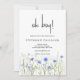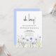 Una invitación a una ducha de bebé con flores azules. Esta tarjeta tiene un diseño moderno de tipos de letra en equipo con nuestro propio prado ilustrado de flores salvajes azules pintado aquí en nuestro estudio. Perfecto para una tarjeta de invitación de bebé o para alojar un fiesta de ducha en honor de un padre nuevo.