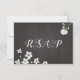Magnífica tarjeta de personalizable botánico rsvp flores blancas hermosas con hojas verdes sobre fondo negro