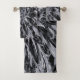 Este juego de toallas de baño incluye toalla de baño, toalla de mano y ropa de lavar y cuenta con una flor de Dalia negra y gris con acentos blancos.