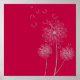 Un bonito diseño de una flor de diente de león blanco soplando en la brisa. Este sencillo arte y moderno diseño floral se encuentra en un entorno de color rosa oscuro personalizable que denota simplicidad, pureza y belleza.
