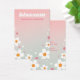 Tarjeta de visualización de joyería de consuelo con flor de fresa blanca en un fondo de degradado verde rosa a pálido del océano, y su nombre de empresa o diseño en una fuente retro.