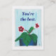 La flor artística, roja y blanca de gloxinia en una maceta de flores azules, con un marcador de posición para el texto, está impresa en tarjetas de visita regordetas. El texto dice: "Eres el mejor, y puedes ser personalizado. Gracias por comprar en CherylsArt en Zazzle.