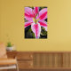 con el diseño original de la pintura acuarela de Sacha Grossel de la flor de lirio caliente rosa, brillante y colorida con follaje verde oscuro. Este llamativo diseño floral está muy cerca, estilo macro para los amantes del arte botánico y de las flores tropicales por todas partes.