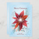 Esta tarjeta de vacaciones presenta una simple flor abstracta roja de Pascua de invierno. Los colores suaves cálidos y fríos complementan cualquier mensaje de vacaciones. La parte trasera de la tarjeta tiene mucho espacio para agregar una foto o texto adicional.