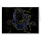 La especie del Daylily es Hemerocallis. Este diseño digital de bordes que brillan intensamente azules, amarillos y verdes crea un esquema de neón del resplandor de una flor del daylily contra un fondo coloreado negro. Las cuchillas de las hojas se resumen en verde. El tecture de los pétalos se destaca en azul. El pistel y los estambres del lirio se acentúan con amarillo, mientras que la silueta de la flor se remonta en un blanco amarillento brillante.