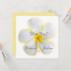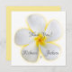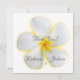 Una invitación a la boda única con una fotografía de primer plano de una flor Plumeria blanca con un resplandor amarillo detrás. Un símbolo hawaiano de "positividad" y "nuevos comienzos". En Hawaii, esta flor se utiliza para hacer collares de lei por su forma y fragancia dulce.