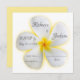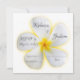Flor de Plumeria Blanca con tarjeta RSVP amarilla