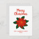 Flor de poinsettia dibujada mano Tarjeta navideña de Feliz Navidad. Diseño elegante sin cuadros. Tarjeta de felicitación simple y hermosa con nombre y fecha personalizados. Diseño artístico floral con flores rojas y hojas verdes. Solicitar en línea y opcionalmente enviar directamente desde Zazzle a amigos y familiares con su lista de direcciones.