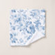 juego de toallas de baño de tres piezas de color azul y blanco. Diseño clásico y atemporal.