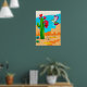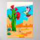 Esta vibrante escena del desierto captura a un colibrí en pleno vuelo acercándose a vibrantes flores rojas de cactus bajo un cielo azul brillante. Con líneas gráficas nítidas y tonos desérticos neón, esta pieza inspirada en el arte pop aporta un giro moderno a la belleza natural del suroeste americano. Ideal para amantes de los colibríes, arte de cactus y color intenso en decoración del hogar.