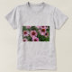 Flores de equinácea rosa con hojas verdes en camiseta de mujeres grises