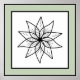Mandala floral minimalista en blanco y negro con contornos negros finos dentro de un borde verde pálido, justo a tiempo para primavera y verano.