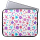 Bonito, manga de ordenador portátil de 15" florida, con un patrón de flores brillantes en color violeta, turquesa, rosa y naranja sobre un fondo blanco; de un collage de papel pintado a mano de Judy Adamson. Puede cambiar fácilmente el color de fondo utilizando el botón Editar.