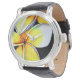 con diseño de arte original de acuarela pintada por Sacha Grossel de amarillo tropical y blanco con verde lima resalta flores frangipani en foco cercano, macro estilo. Este diseño botánico floral, colorido y luminoso recuerda al verano, la cultura del surf, el clima cálido y estar cerca de la playa.