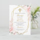 Flor rosa Bautismo invitación chica en español, invitación de bautizo para niña