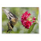 Esta es la hermosa mariposa monarca en la tarjeta de saludo de flores rosadas.