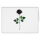 Rosa negro simbólico, dibujado de forma artística, con tallos verdes y hojas sobre fondo blanco. Rosa negro.