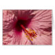Tarjeta de felicitación en blanco que ofrece una foto macra de una flor rosada del hibisco.