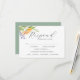 Diseñada para coordinar con mi tema de papelería de boda de flores silvestres, esta tarjeta de presentación de respuestas cuenta con un espacio para que los huéspedes agreguen su información de respuesta y una sencilla elección de comida con una cubierta superior de flores acuarelas en tonos naranja y lavanda. La tarjeta se revierte a un color verde sabio sólido. Una elección sencilla pero clásica para bodas en el jardín. Para ver la correspondencia de la papelería boda visite www.zazzle.com/dotellabelle Arte y diseño de acuarela único de Victoria Grigaliunas de Do Tell A Belle.