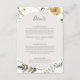 Esta flor de primavera | la tarjeta del recinto de detalles blancos es perfecta para su boda rústico de boho vintage. El diseño presenta flores silvestres coloridas y elegantes de color pastel de color pastel. Recuerda a un típico prado de jardín bohemio de verano. El diseño se caracteriza por la presencia de flores y vegetación minimalista y moderna, que le confieren un toque antiguo. Manténgalo como está, o siéntase libre de cambiar el tipo de letra o añadir sus propias fotos. No olvide visitar el resto de la colección Spring Wildflower para encontrar más productos, para completar el tema boda.