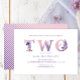 Celebra el segundo cumpleaños de tu flor silvestre con esta elegante invitación floral. Con sus tonos púrpura pastel, sus suaves acuarelas y su delicada tipografía, es el lugar perfecto para celebrar fiestas de cumpleaños en primavera con un tema dulce inspirado en el jardín.