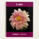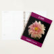Un planificador con una foto de una flor retorciendo pedales contra un negro sobre un fondo morado