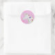 Un unicornio blanco con flores en su forma, en un fondo rosado, en este conjunto de pegatinas.